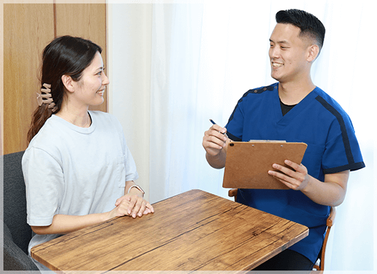 痛みの原因を突き止めるために、親身になって徹底的にお話を伺います。